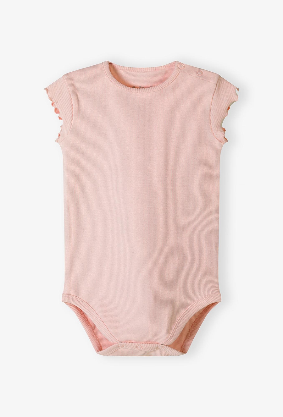 Zapewnij swojej córeczce komfort i styl od pierwszych dni! To różowe body niemowlęce to idealne połączenie minimalistycznego designu z delikatnymi, dziewczęcymi detalami. Dzięki elastycznej strukturze materiału i radosnej kolorystyce, body to stanie się bazowym elementem wyprawki, zapewniając dziecku pełną swobodę ruchów podczas snu i zabawy. Krótkie rękawki typu motylek zostały wykończone delikatnym ściegiem, który tworzy subtelną falbankę. Ten mały akcent nadaje ubranku wyjątkowego, dziewczęcego charakteru. Pastelowy odcień różu jest ponadczasowy i bardzo łatwy do zestawienia z białymi legginsami, kwiecistymi spódniczkami czy bawełnianym kapeluszem ażurowym.