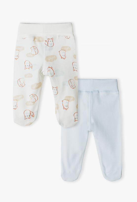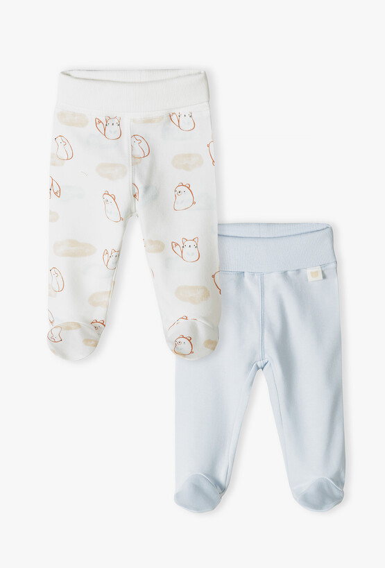 Zadbaj o spokojny sen i radosną zabawę swojego maluszka! Ten praktyczny 2-pak półśpiochów to fundament niemowlęcej garderoby. Łączą one w sobie funkcjonalność spodenek z ochroną, jaką dają skarpetki, zapewniając dziecku ciepło i pełną swobodę ruchów bez ryzyka wychłodzenia stópek. Klasyczny, gładki model w kolorze jasnego błękitu z subtelną naszywką z motywem misia przy pasie. Uniwersalna baza do każdego body. Ozdobione delikatnym, akwarelowym nadrukiem śpiących lisków, misiów i chmurek. To spokojny, uroczy wzór idealny dla noworodka. Zintegrowane stópki eliminują problem spadających skarpetek i gwarantują, że nóżki dziecka pozostaną ciepłe przez cały czas.