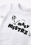 To białe body to idealny wybór dla każdego maluszka, który od pierwszych miesięcy wykazuje wielką energię do zabawy. Wykonane w 100% z bawełny, zapewnia delikatnej skórze dziecka pełen komfort i swobodę ruchów. Na środku znajduje się napis „MAŁY MISTRZ”, uzupełniony grafiką klasycznej piłki nożnej. To uroczy sposób na podkreślenie sportowego ducha w rodzinie. Body posiada praktyczne zapięcia na bezpieczne napy na ramieniu oraz w kroku, co ułatwia rodzicom szybką zmianę pieluszki lub ubranka. To body z pewnością wywoła uśmiech na twarzach domowników i będzie świetnym strojem na wspólne oglądanie meczu.