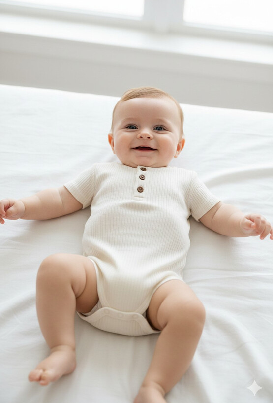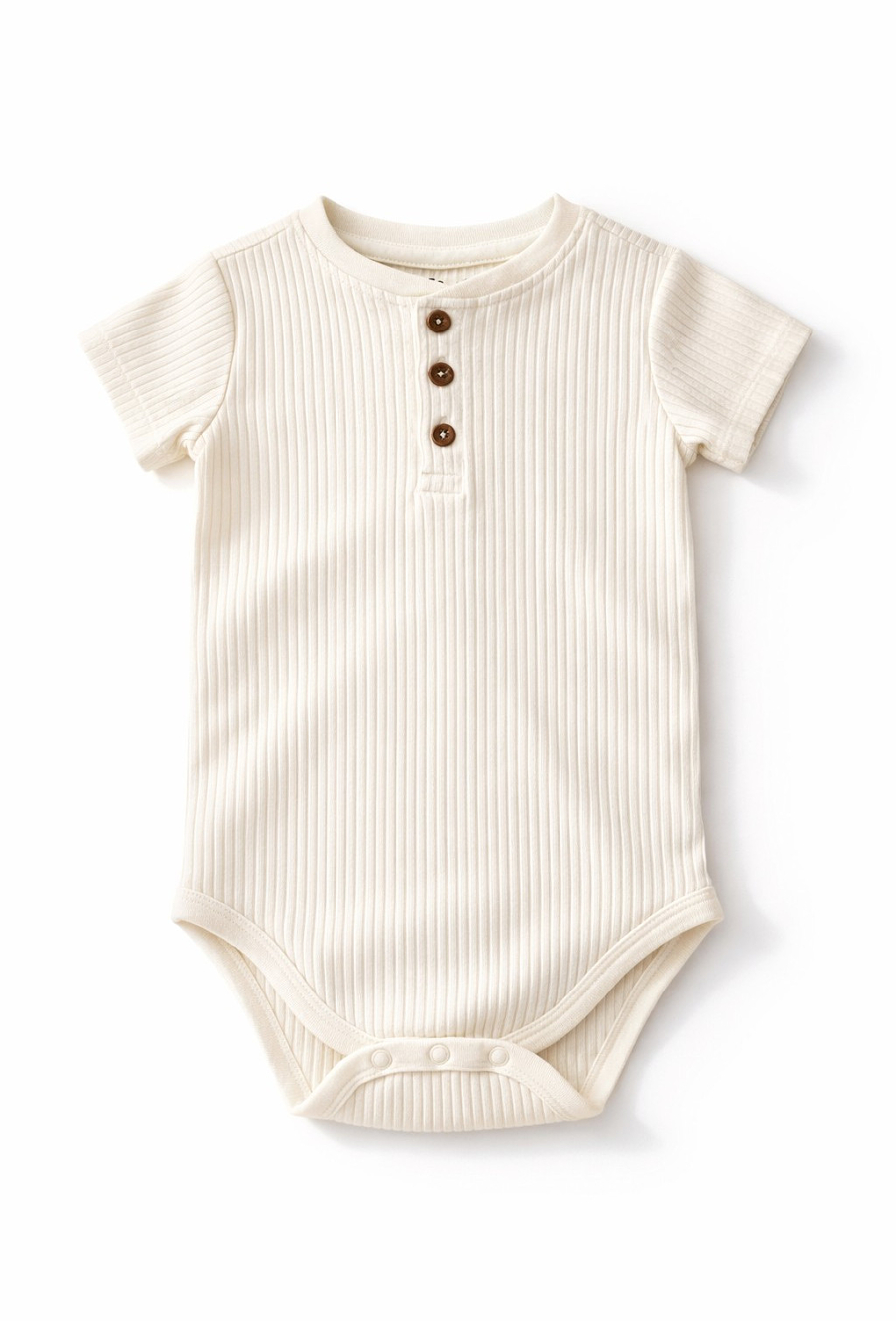 Body niemowlęce z krótkim rękawem z guziczkami przy dekolcie, które ułatwiają zakładanie i zdejmowanie. Wykonane z miękkiej, przyjemnej w dotyku dzianiny, zapewnia komfort noszenia przez cały dzień. Zapięcie na napy w kroku pozwala na szybkie i wygodne przewijanie. Stonowana kolorystyka sprawia, że body doskonale sprawdzi się w codziennych stylizacjach.
