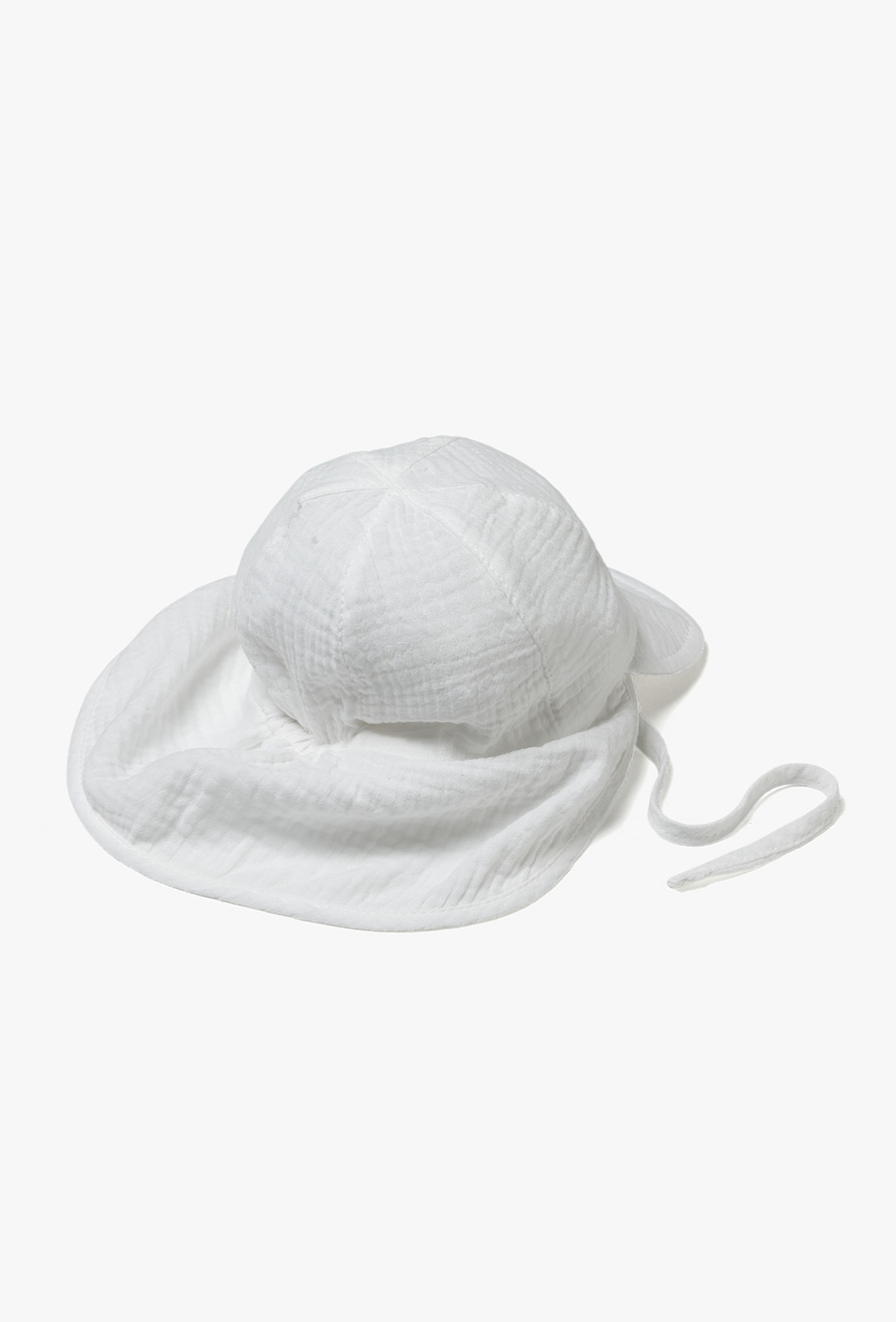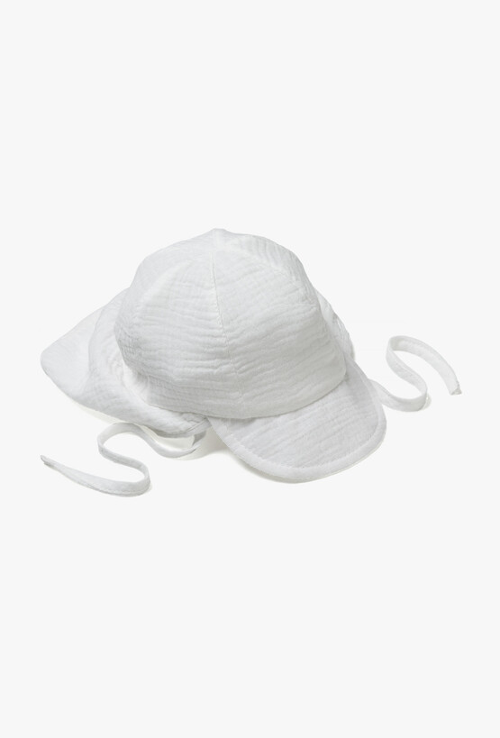 Zadbaj o delikatną skórę swojego dziecka podczas letnich spacerów! Ta śnieżnobiała czapka niemowlęca to połączenie maksymalnej ochrony z niezwykłą lekkością materiału. Została zaprojektowana tak, aby chronić nie tylko główkę, ale także wrażliwe uszy i kark maluszka przed bezpośrednim działaniem promieni słonecznych. Miękki daszek osłania oczy dziecka przed rażącym słońcem, a przedłużany tył skutecznie zasłania kark, zapobiegając oparzeniom słonecznym podczas zabawy w wózku czy na kocyku. Czapka posiada miękkie troczki do zawiązania pod brodą. Dzięki temu stabilnie trzyma się na głowie, nie zsuwa się na oczy i nie zostanie zdjęta przez dziecko podczas spaceru.
