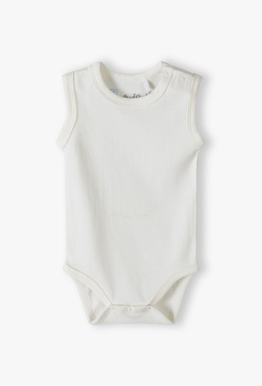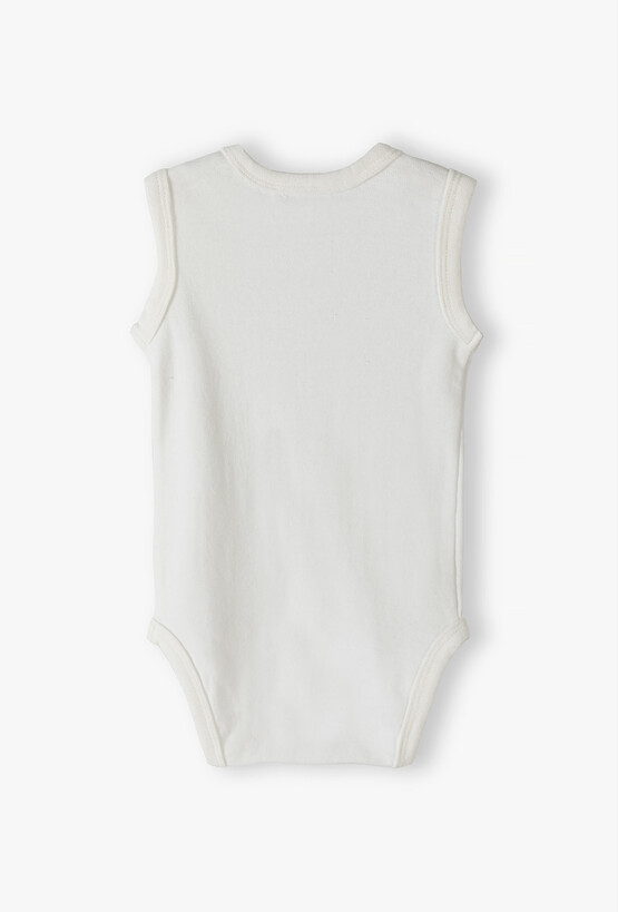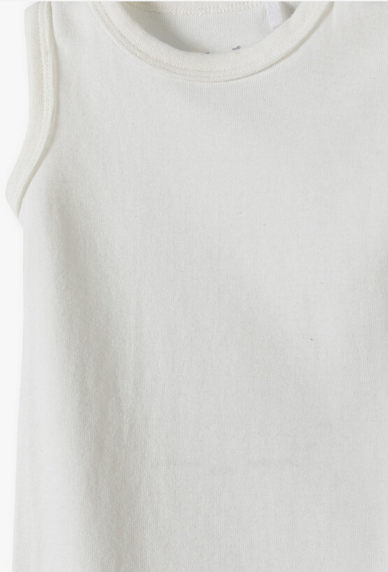 Zapewnij swojemu maleństwu najwyższy komfort od pierwszych dni życia! To białe body bez rękawów to absolutny klasyk, którego nie może zabraknąć w żadnej wyprawce. Dzięki swojej prostocie i funkcjonalności, stanowi idealną warstwę bazową pod sukienki, pajacyki czy sweterki, a w upalne dni świetnie sprawdzi się jako samodzielny strój. Body posiada bezpieczne, bezniklowe napy na lewym ramieniu, co znacznie ułatwia przekładanie ubranka przez główkę dziecka. Trzy solidne zatrzaski w dolnej części umożliwiają szybką i sprawną wymianę pieluszki bez konieczności rozbierania całego maluszka.