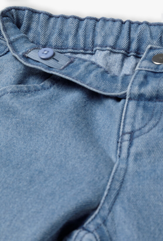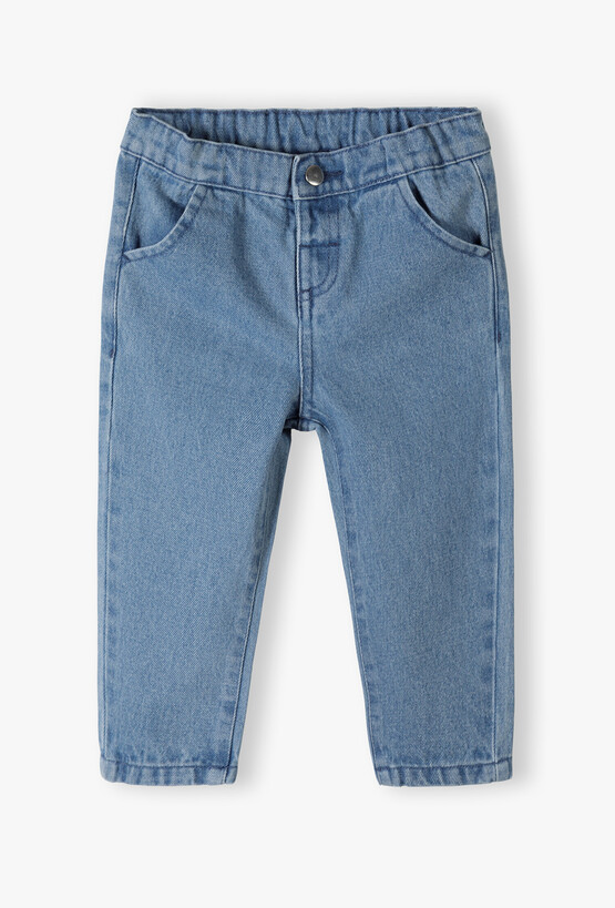 Zapewnij swojemu maluszkowi stylowy wygląd bez rezygnacji z wygody. Te urocze spodnie jeansowe to idealny kompromis między modnym designem a funkcjonalnością, niezbędną w garderobie niemowlęcia. Spodnie posiadają szeroki, elastyczny pas z gumką, który idealnie dopasowuje się do brzuszka dziecka, nie powodując ucisku. Dodatkowe zapięcie na dekoracyjny zatrzask ułatwia zakładanie. Proste nogawki sprawiają, że spodnie świetnie prezentują się zarówno z eleganckim ażurowym sweterkiem, jak i sportowym body z radosnym napisem.