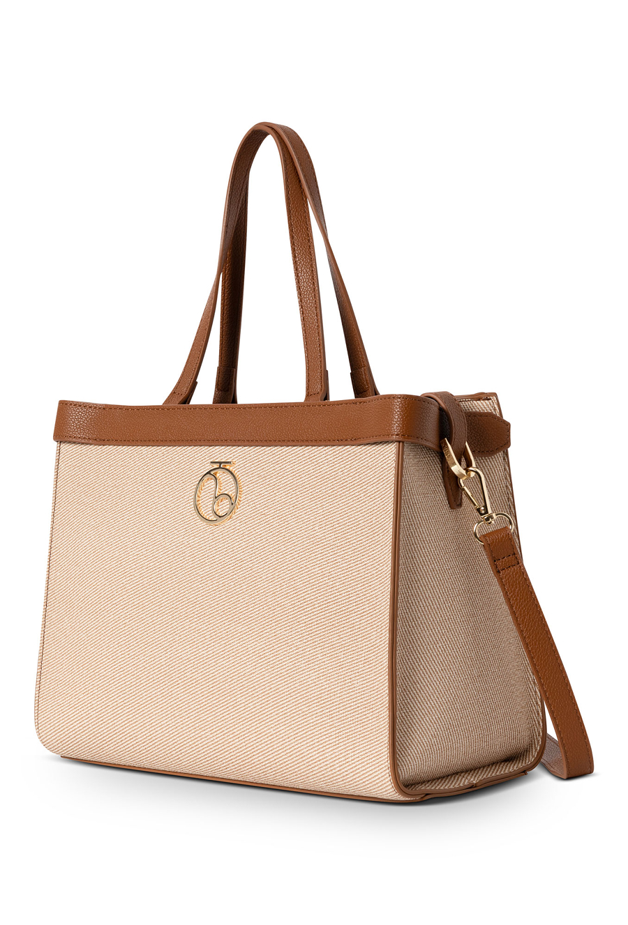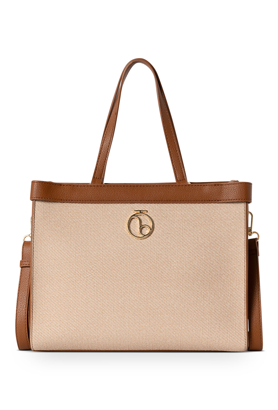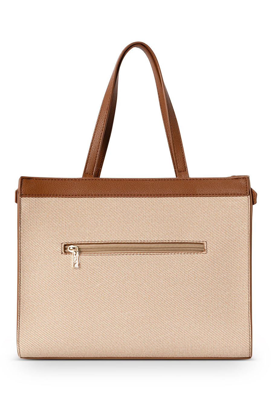 Beżowo-brązowa torebka NOBO to świetny wybór dla mam, które cenią elegancję połączoną z praktycznymi rozwiązaniami. Wykonana z wysokiej jakości skóry ekologicznej o fakturze przypominającej gabardynę, zachwyca unikatowym charakterem i ponadczasowym stylem. Torebka została zaprojektowana tak, aby zmieścić format A5 – idealny na dokumenty, planer czy drobiazgi potrzebne każdego dnia. Główna komora zapinana na zamek błyskawiczny gwarantuje bezpieczeństwo zawartości, a trzy wewnętrzne kieszenie ułatwiają utrzymanie porządku. Z tyłu znajduje się dodatkowa kieszeń na suwak – praktyczne miejsce na portfel, telefon czy klucze. Dzięki krótkim rączkom oraz dołączonemu długiemu paskowi torebkę można nosić na dwa sposoby – w ręku lub na ramieniu. Jej wymiary (30 cm x 24 cm x 11 cm) sprawiają, że jest wygodna i pojemna, a jednocześnie elegancka i lekka. Doskonała zarówno na co dzień, jak i do pracy czy spotkania rodzinne.