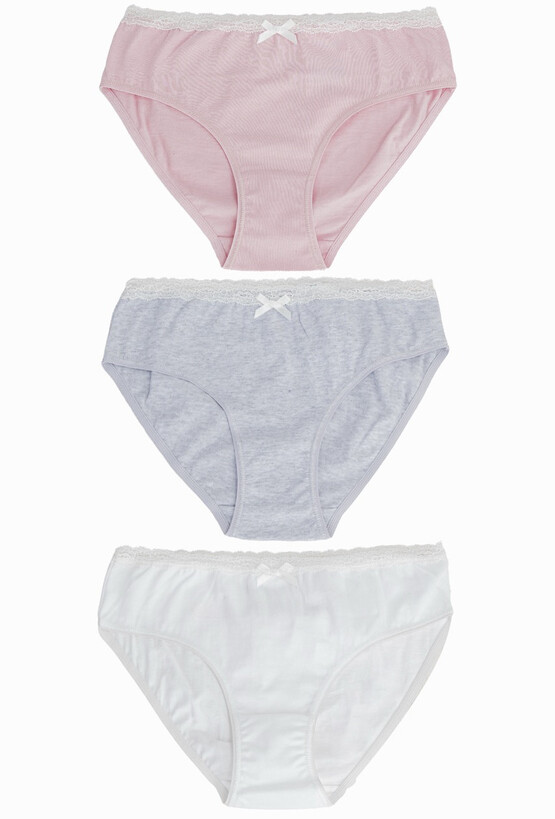 Majtki dziewczęce 3-pak – bawełna, koronkowe wykończenie.