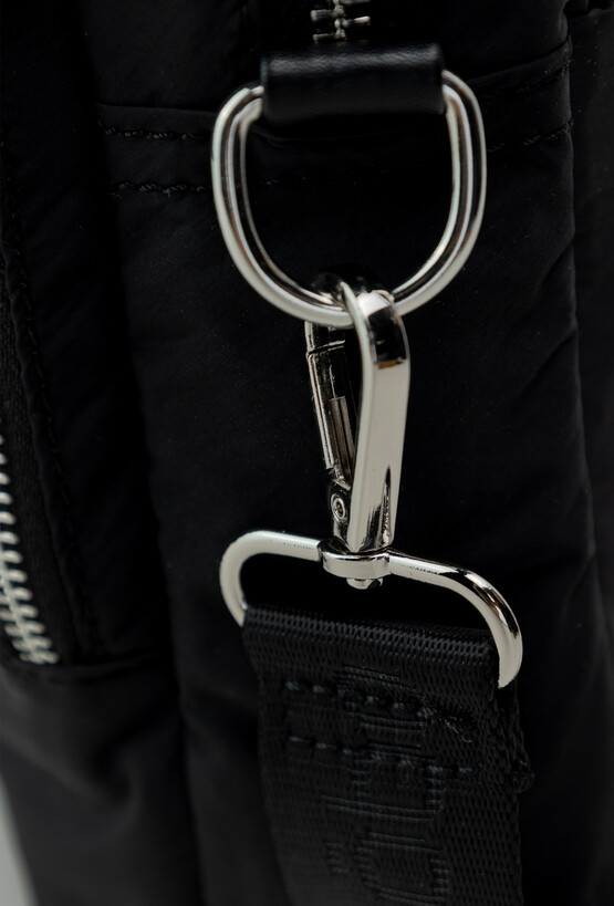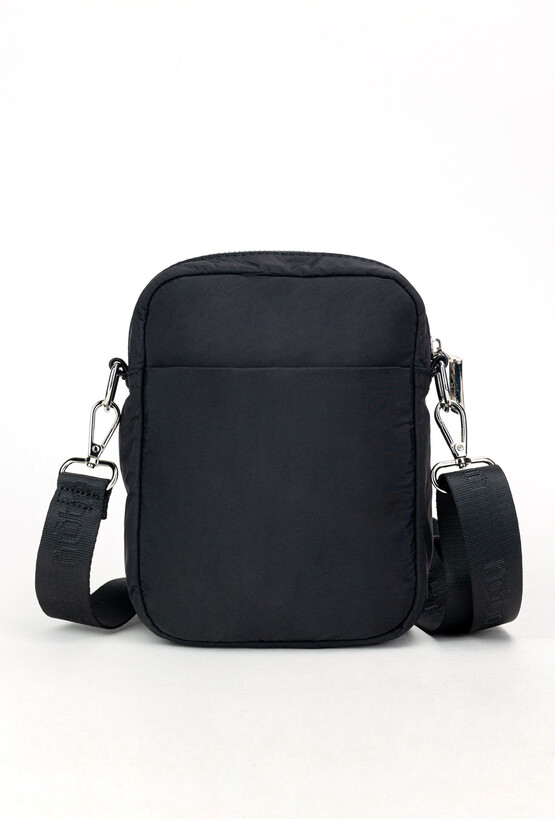 Czarna listonoszka z kieszeniami i regulowanym paskiem.