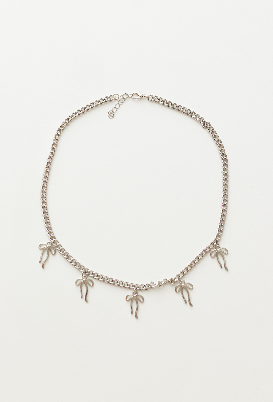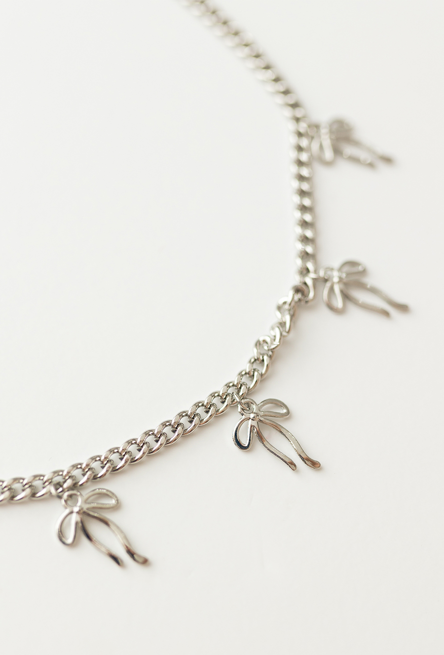 Podkreśl styl swojej małej modnisi dzięki delikatnemu naszyjnikowi z zawieszkami w kształcie kokardek. To wyjątkowy dodatek, który doda elegancji zarówno na co dzień, jak i podczas wyjątkowych okazji, takich jak urodziny, święta czy szkolne uroczystości. Wykonany z lekkiego metalu w srebrnym kolorze, naszyjnik jest wygodny w noszeniu i bezpieczny dla dzieci. Regulowane zapięcie pozwala dopasować długość do indywidualnych potrzeb.