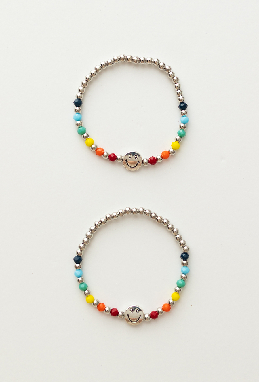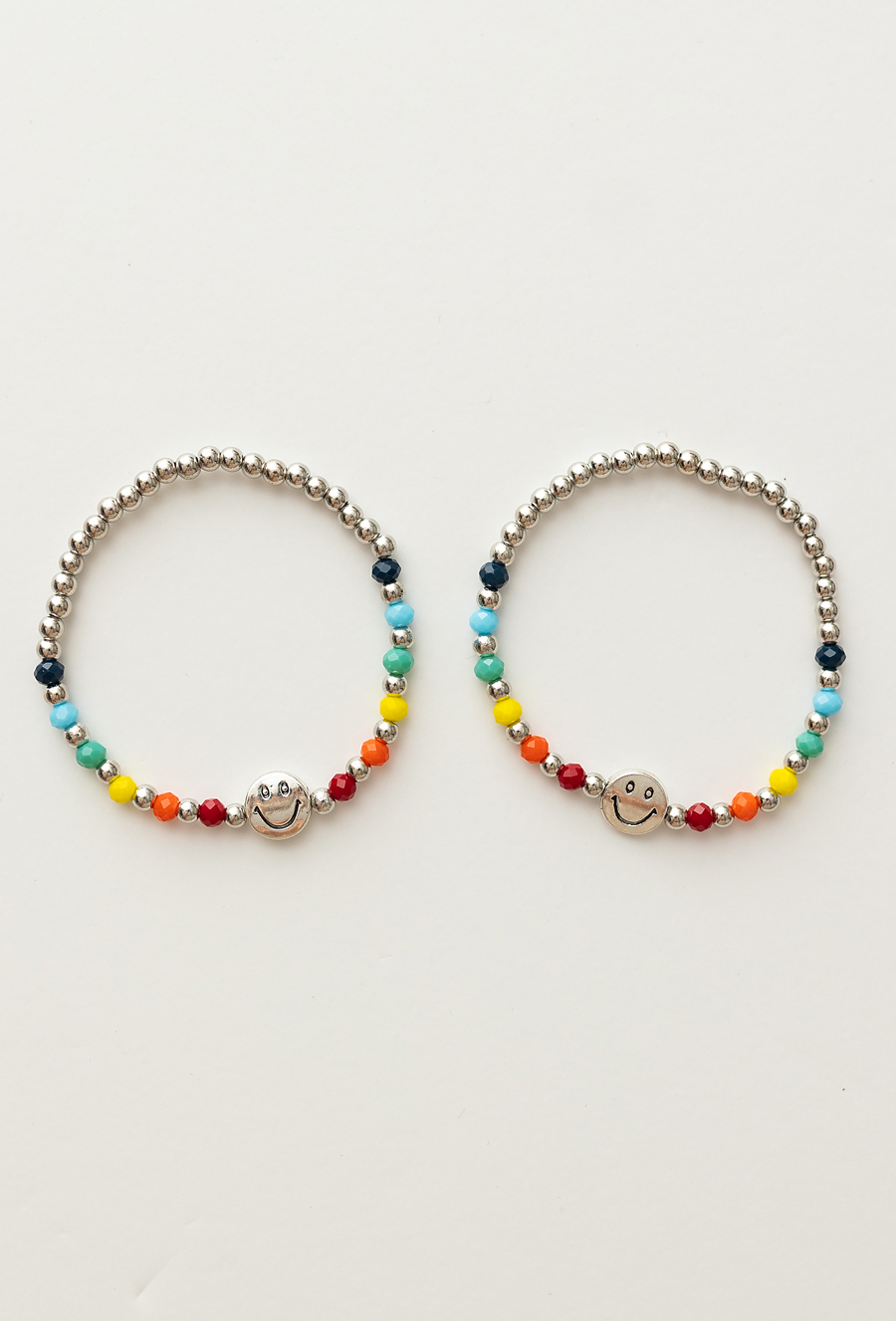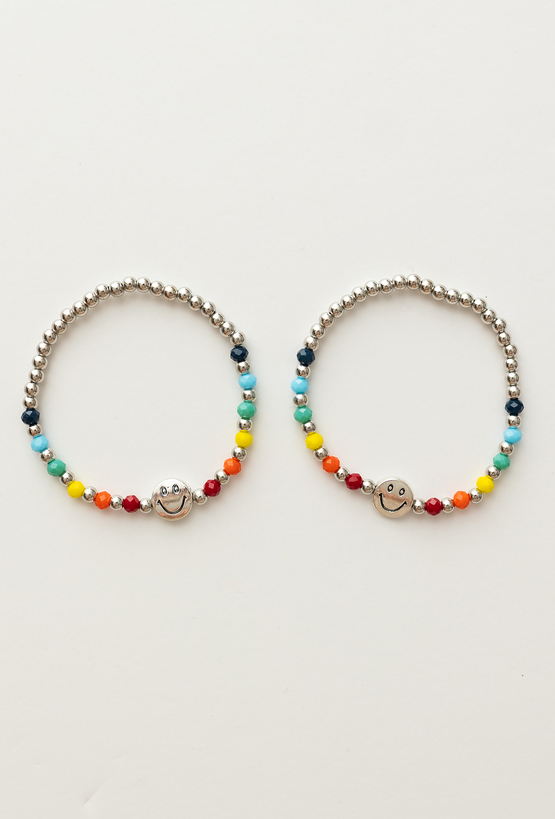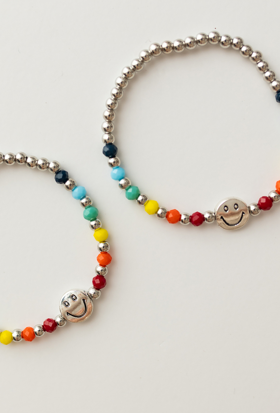 Zestaw bransoletek z kolorowych koralików z buźką – 2 szt