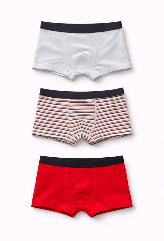 Praktyczny 3-pak bokserek chłopięcych, które świetnie sprawdzą się na co dzień. Uszyte z miękkiej bawełny z dodatkiem elastanu (95%/5%), są przyjemne dla skóry, a jednocześnie elastyczne i dobrze dopasowane. Guma w pasie utrzymuje bokserki na miejscu bez ucisku, zapewniając komfort podczas zabawy i w szkole. Zestaw zawiera różne warianty kolorystyczne/wzory.