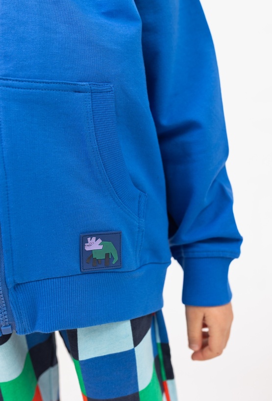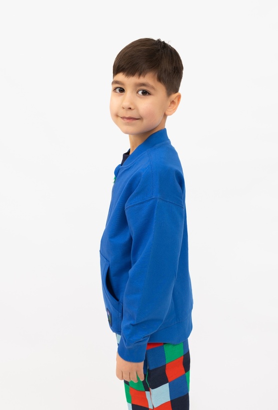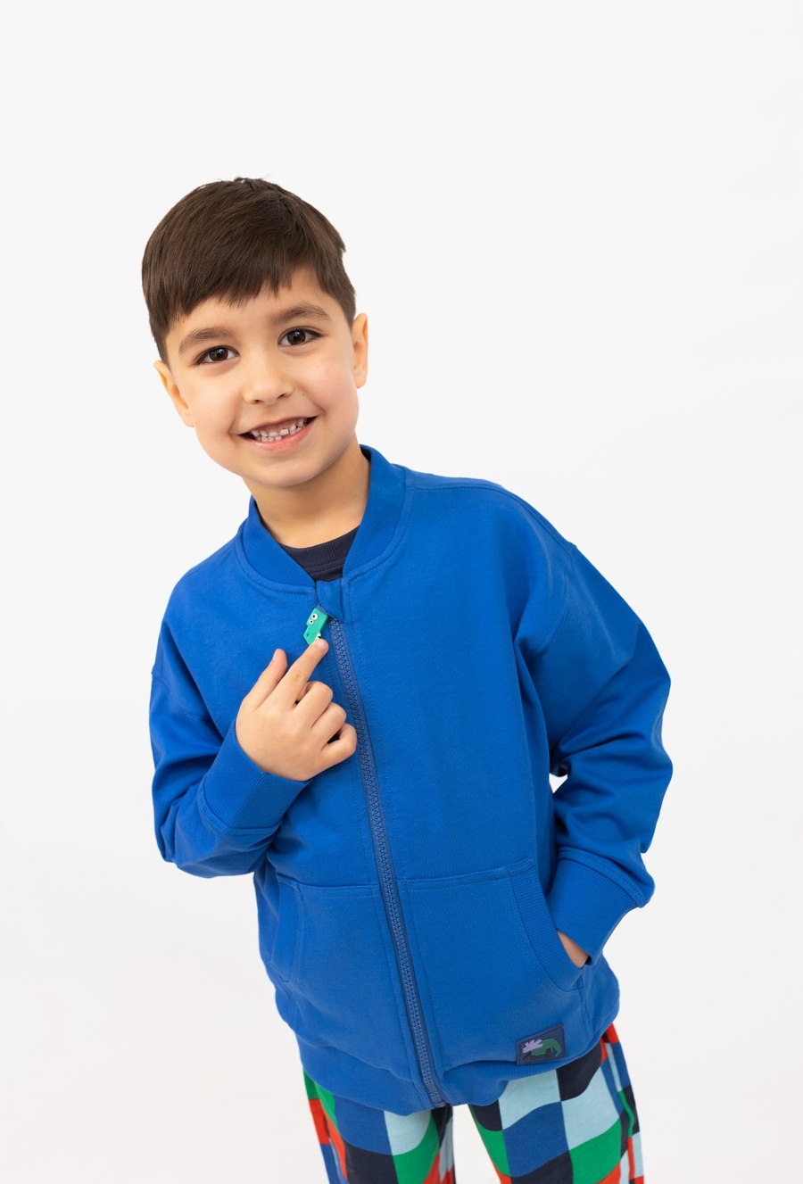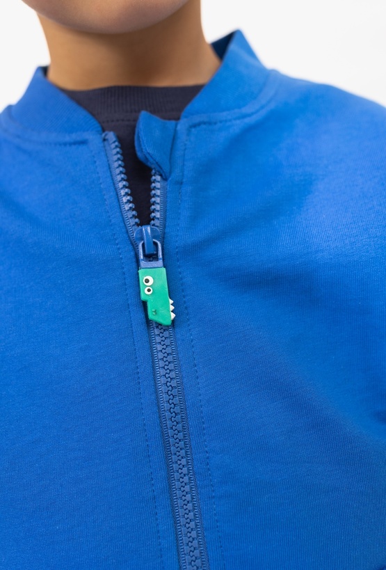 Wygodna, niebieska bluza rozpinana dla chłopca to idealny wybór na co dzień – do szkoły, przedszkola i na aktywne popołudnia. Model ma praktyczną stójkę i komfortowy krój comfort, który nie krępuje ruchów. Całość wykonano z 100% bawełny, dzięki czemu bluza jest przyjemna w dotyku i dobrze sprawdza się w codziennym noszeniu. Uwagę przyciąga ozdobny suwak z uchwytem w kształcie dinozaura oraz mała naszywka na dole.