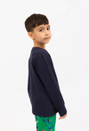Granatowa bluzka chłopięca z długim rękawem to wygodna baza do codziennych stylizacji, a mały nadruk wozu strażackiego dodaje jej charakteru. Uszyta z 100% bawełny, jest przyjemna w dotyku, oddychająca i sprawdzi się zarówno w szkole, jak i podczas zabawy. Klasyczny fason łatwo dopasować do jeansów, spodni dresowych czy kolorowych joggerów.