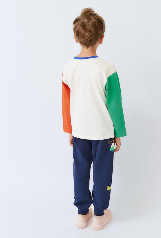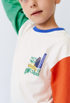Bluzka dziecięca ecru z kolorowymi rękawami.