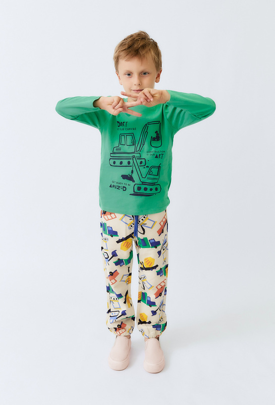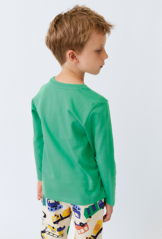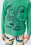 Bluzka dziecięca zielona z nadrukiem koparki.