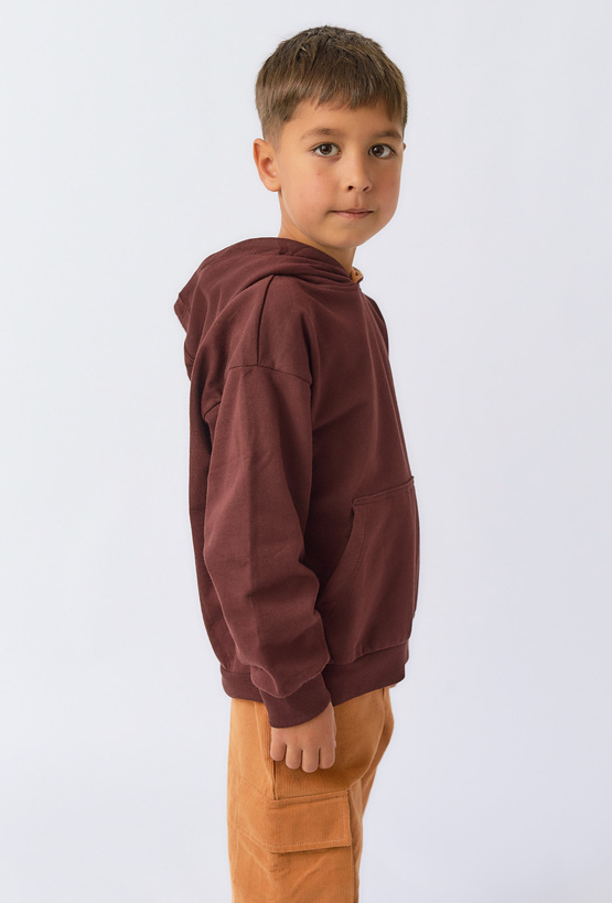 Bordowa bluza chłopięca z kapturem i kieszenią
