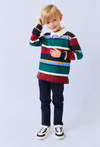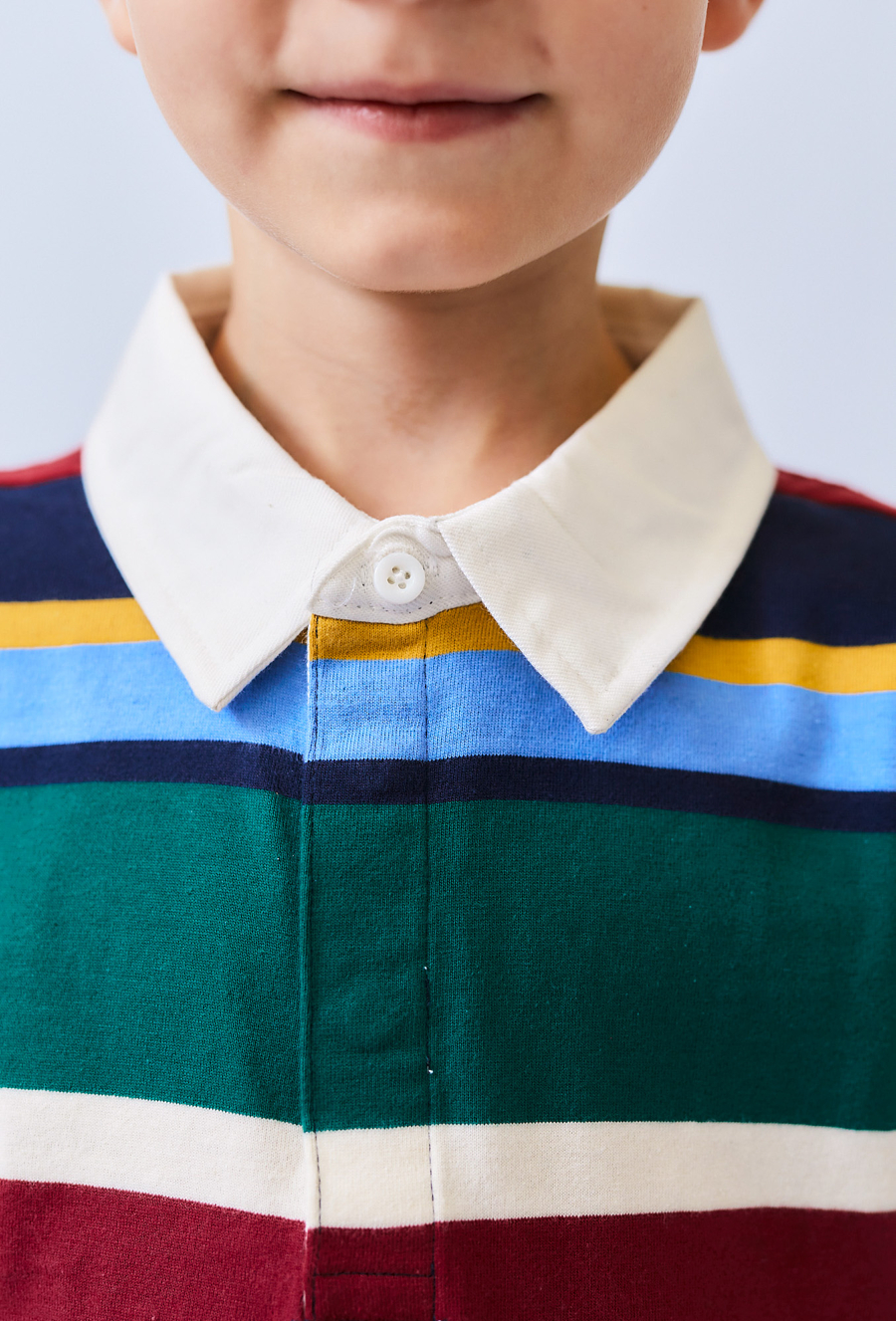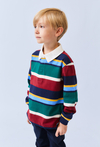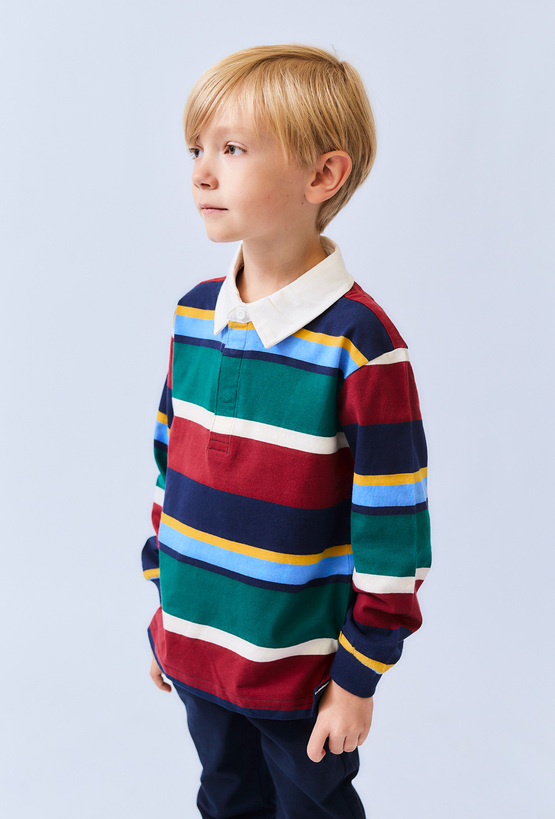 Chłopięca koszulka polo z długim rękawem w kolorowe paski.