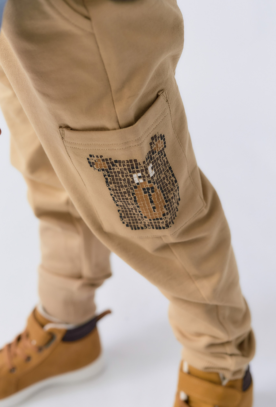 Spodnie dresowe chłopięce z pikselowym nadrukiem