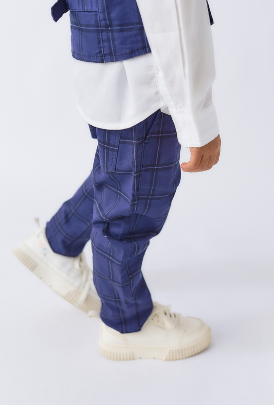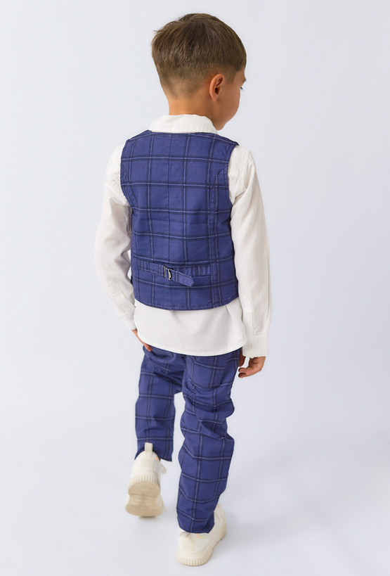 Stylowe i komfortowe spodnie klasyczne dla chłopca w granatową kratę to doskonały wybór na specjalne okazje. Wykonane z wysokiej jakości tkaniny, zapewniają zarówno elegancki wygląd, jak i wygodę noszenia przez cały dzień. Idealnie komponują się z kamizelką i białą koszulą, tworząc komplet na uroczystości rodzinne, święta, a nawet szkolne akademie. Krój spodni zapewnia swobodę ruchów, a krata dodaje stylowego charakteru.