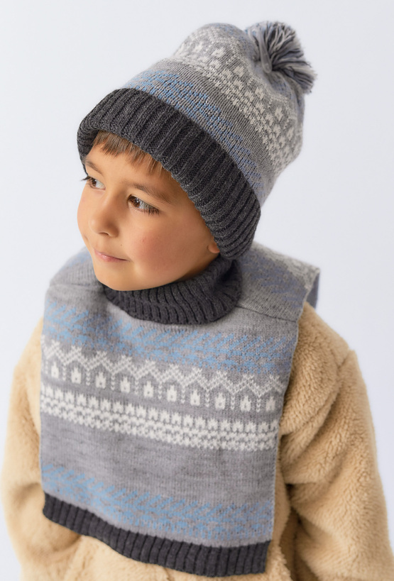 Stylowa i funkcjonalna czapka zimowa dla chłopca to must-have na zimowe dni. Wyróżnia ją klasyczny norweski wzór w chłodnych odcieniach szarości i błękitu, a miękki pompon dodaje jej dziecięcego uroku. Czapka jest przyjemna w dotyku, elastyczna i dobrze dopasowuje się do głowy dziecka. Szeroki, prążkowany ściągacz chroni uszy i czoło przed wiatrem, zapewniając komfort cieplny podczas zimowych spacerów czy zabawy na śniegu.