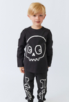 Czarna bluzka chłopięca z nadrukiem czaszki.