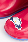 Praktyczne kalosze dziecięce w intensywnym czerwonym kolorze, ozdobione zabawnymi aplikacjami auta i helikoptera. Wyposażone w miękką, wyjmowaną wkładkę, która zapewnia komfort cieplny i wygodę noszenia. Doskonałe na deszczowe dni, jesień i wiosnę. 100% materiał syntetyczny, antypoślizgowa podeszwa, łatwe do czyszczenia.