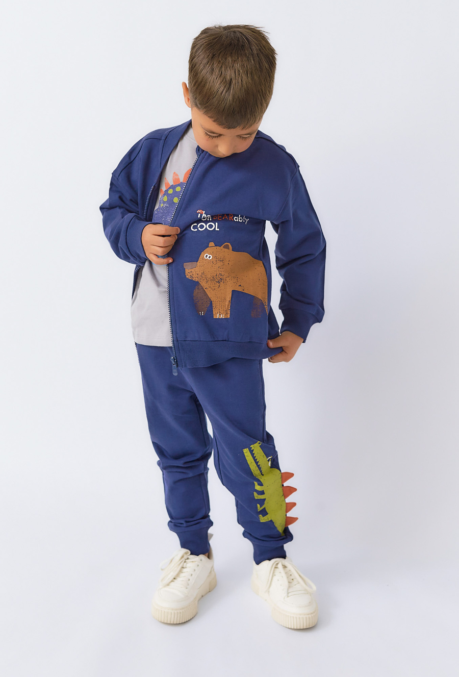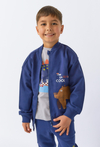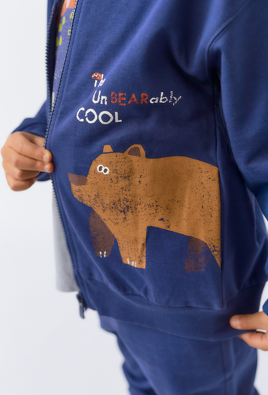 Ta granatowa chłopięca bluza rozpinana na stójce to idealne połączenie komfortu i stylu na co dzień. Uszyta z wysokiej jakości dzianiny bawełnianej (100%), jest miękka, przyjemna dla skóry i świetnie sprawdzi się zarówno do przedszkola, szkoły, jak i na spacer. Zapięcie na zamek ułatwia zakładanie, a motyw sympatycznego misia i zabawny napis dodają całości dziecięcego charakteru. Uniwersalny fason i klasyczny krój na stójce zapewniają wygodę noszenia i dobrze komponują się z różnymi stylizacjami.