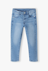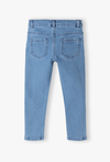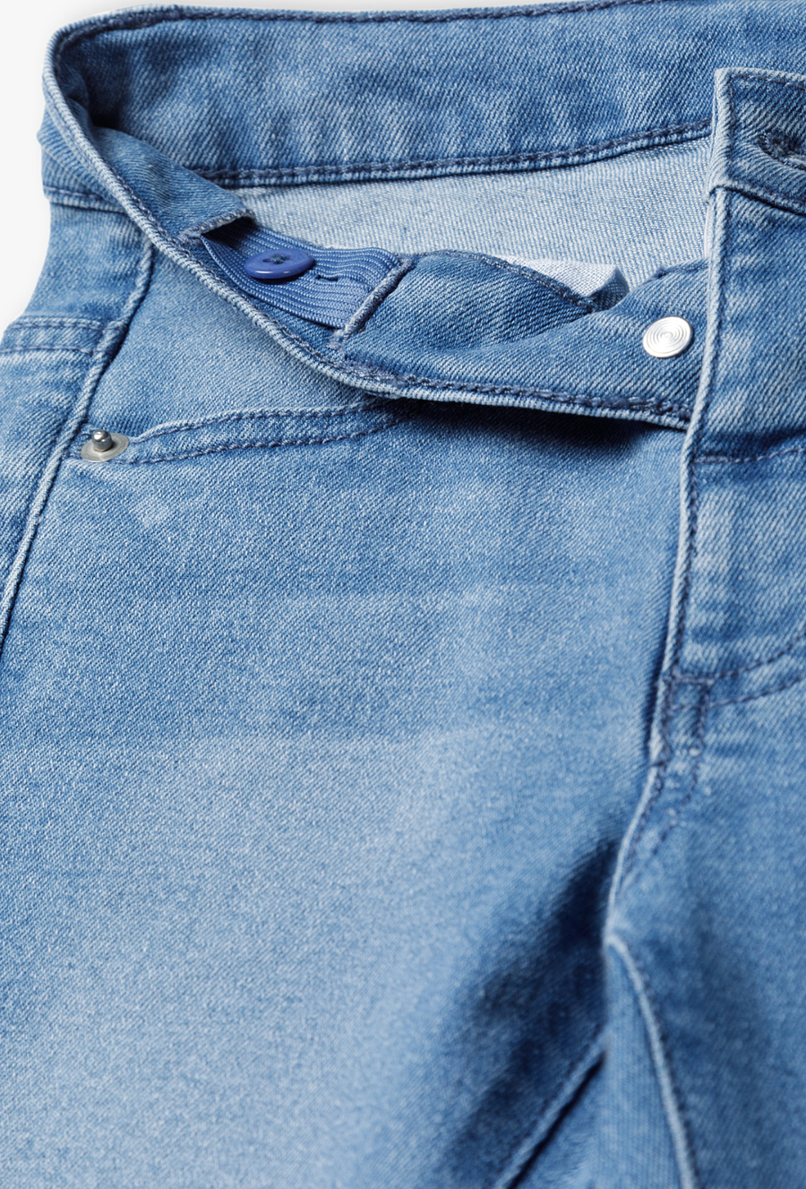 Klasyczne jeansy w kolorze jasnego błękitu – fundament każdej dziecięcej stylizacji. Postaw na ponadczasowy denim, który nigdy nie wychodzi z mody! Te jasnoniebieskie spodnie jeansowe to idealny wybór dla małego chłopca, łączący stylowy wygląd z funkcjonalnością niezbędną podczas codziennych przygód. Wewnątrz paska znajduje się ukryta guma z guzikami. Pozwala to na precyzyjne dopasowanie obwodu spodni do sylwetki dziecka, dzięki czemu jeansy „rosną” razem z nim i nie zsuwają się podczas zabawy. Jasny odcień niebieskiego doskonale komponuje się zarówno z elegancką koszulą, kolorowym T-shirtem, jak i sportową bluzą z kapturem.