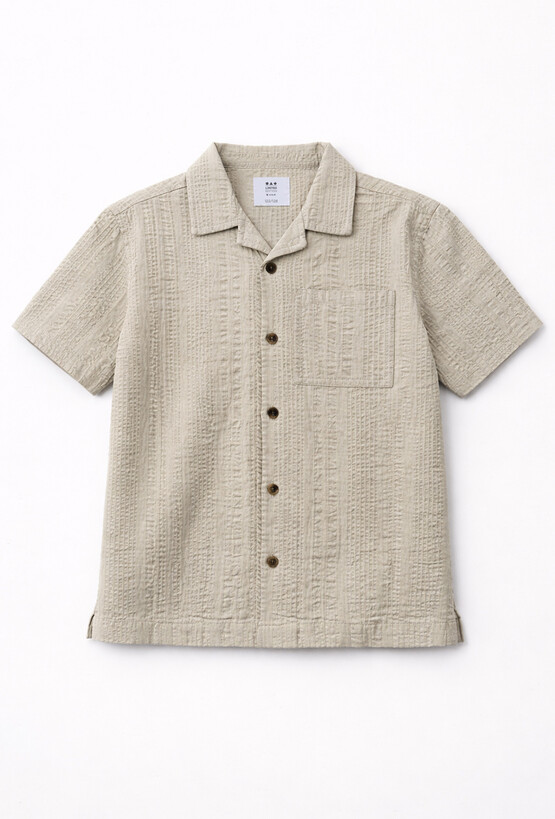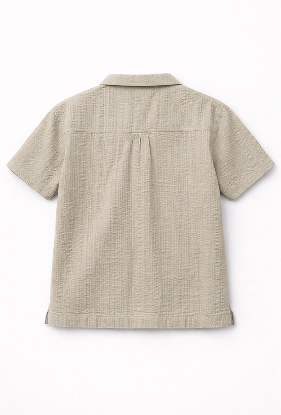 Lekka i stylowa koszula rozpinana 51015 dla chłopca w kolorze ecru. Uszyta z bawełnianej, strukturalnej tkaniny (100% bawełna), świetnie sprawdzi się w cieplejsze dni – jest przewiewna, przyjemna dla skóry i wygląda elegancko. Koszula ma kołnierzyk, krótki rękaw oraz praktyczną kieszonkę na piersi. To doskonały wybór zarówno do codziennych stylizacji z szortami, jak i na rodzinne uroczystości – z chinosami lub spodniami materiałowymi.