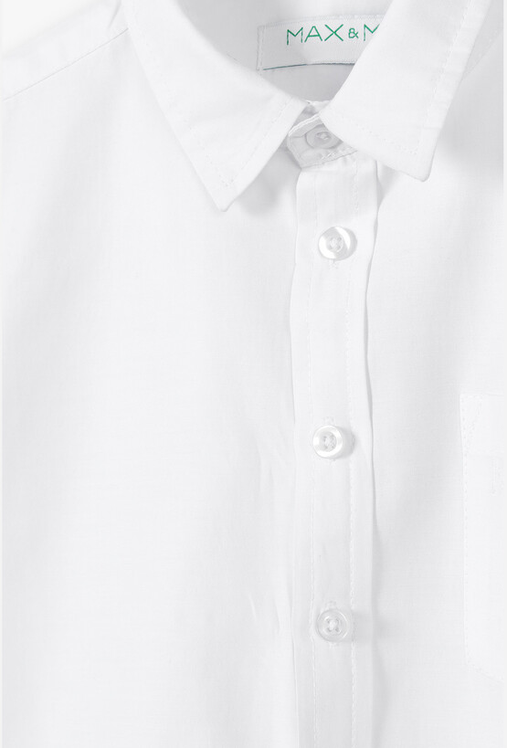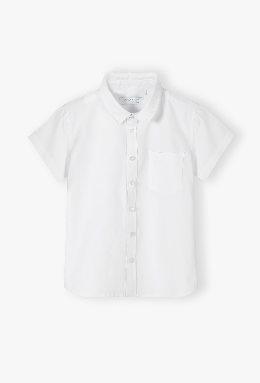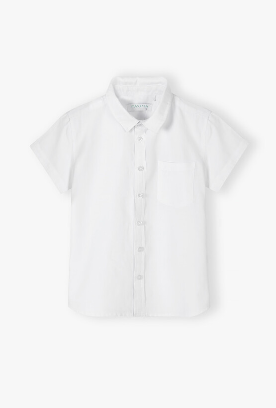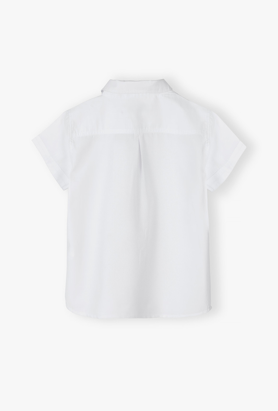 Postaw na nienaganny wygląd swojego syna, nawet w najgorętsze dni! Ta biała koszula to fundament szafy każdego młodego dżentelmena. Dzięki połączeniu tradycyjnego kroju z lekkim, krótkim rękawem, stanowi idealny wybór na zakończenie roku szkolnego, rodzinne uroczystości, komunie czy wesela odbywające się latem. Prosty krój z delikatnie zaokrąglonym dołem sprawia, że koszula dobrze wygląda zarówno wpuszczona w spodnie, jak i noszona na wierzchu. Zakładka na plecach pod karczkiem zapewnia dodatkową przestrzeń i swobodę ramion. Biała koszula to „baza idealna”. Doskonale komponuje się z granatowymi spodniami typu chino, jasnoniebieskimi jeansami Wide Leg, a w bardziej casualowym wydaniu – nawet z szortami dresowymi.