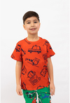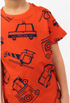 Czerwona koszulka dziecięca COMFORT z nadrukiem w auta to energetyczny hit dla małych fanów pojazdów! Całość pokrywają rysunkowe motywy samochodów i maszyn (m.in. policyjny wóz, helikopter, wozy ratunkowe), dzięki czemu koszulka wygląda ciekawie z każdej strony i od razu przyciąga uwagę. Model w wersji COMFORT stawia na wygodę — to idealny T-shirt na intensywny dzień: do przedszkola, szkoły, na plac zabaw i wycieczki.