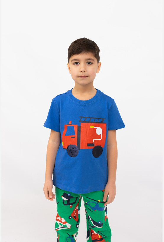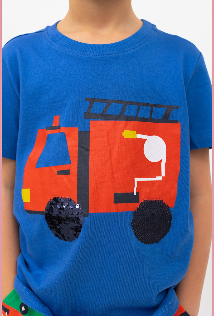 Koszulka chłopięca niebieska „Wóz strażacki”