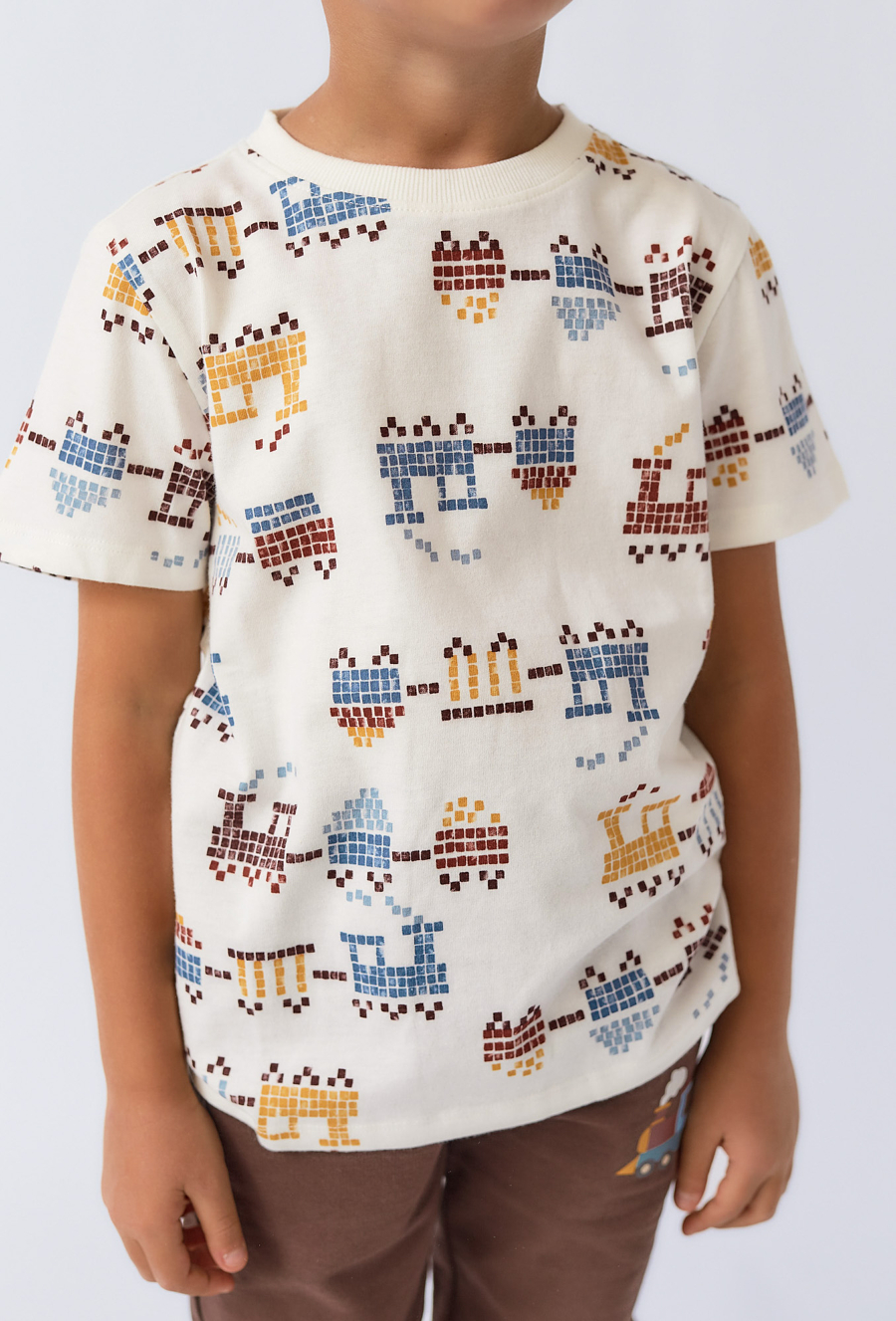 Wyjątkowa koszulka chłopięca z motywem inspirowanym klasyczną grafiką pikselową. Idealna dla małych fanów gier retro i unikalnego stylu! Uszyta z wysokiej jakości bawełny, zapewnia maksymalną wygodę i przewiewność. Świetna zarówno na zabawę, jak i codzienne aktywności.