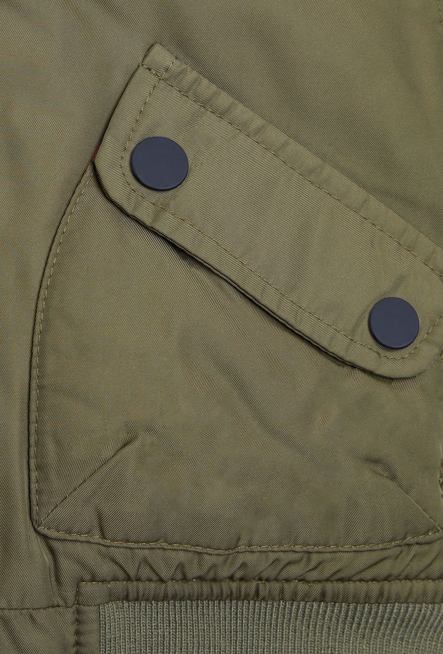 Ta przejściowa kurtka dla chłopca łączy funkcjonalność i nowoczesny styl bomberki. Duże kieszenie pomieszczą wszystkie niezbędne drobiazgi, a dodatkowa kieszeń na rękawie to praktyczny detal, który dodaje kurtce wyjątkowego charakteru. Z kapturem chroniącym przed wiatrem, kurtka idealnie sprawdzi się podczas spacerów w chłodniejsze dni, oferując wygodę i swobodę ruchów.