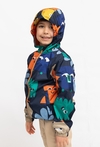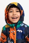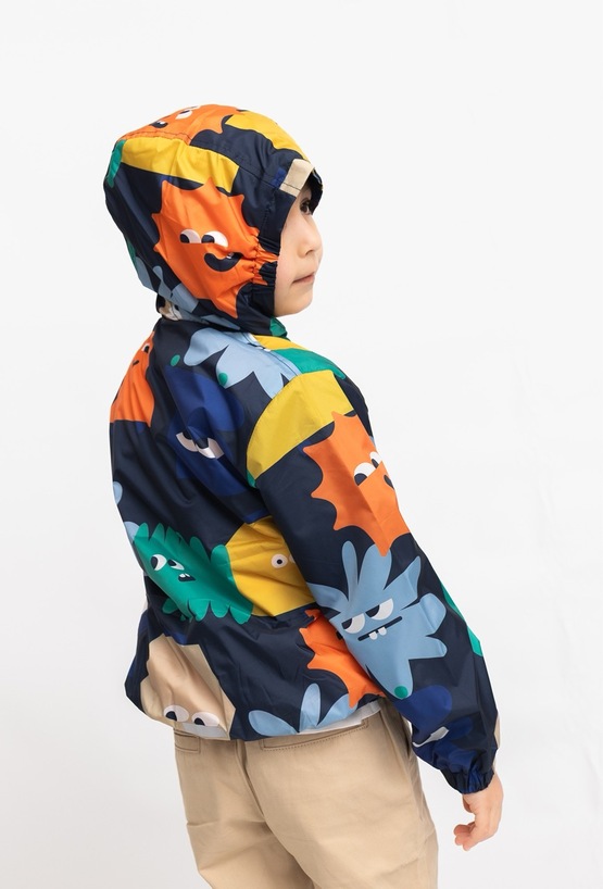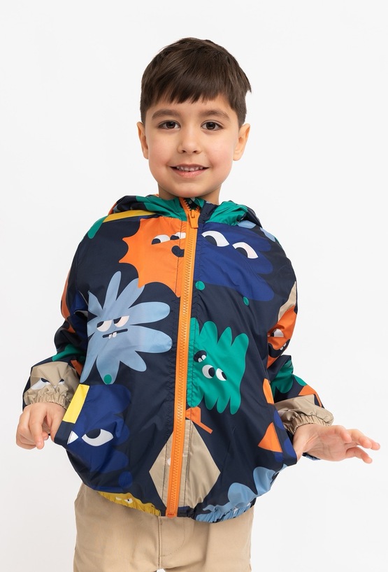 Kolorowa kurtka przejściowa dla chłopca, która sprawdzi się w chłodniejsze dni wiosny i jesieni. Ma wygodny kaptur, zapięcie na zamek na całej długości oraz miękką, polarową podszewkę, która przyjemnie otula i dodaje ciepła. Elastyczne ściągacze przy rękawach i u dołu pomagają dopasować kurtkę i chronią przed podwiewaniem. Wyrazisty print w zabawne stworki dodaje stylu i poprawia humor od pierwszego założenia.