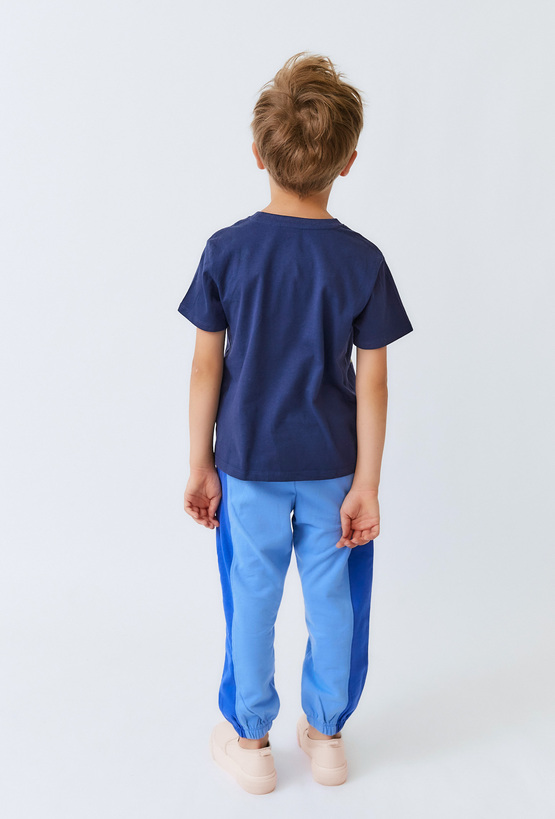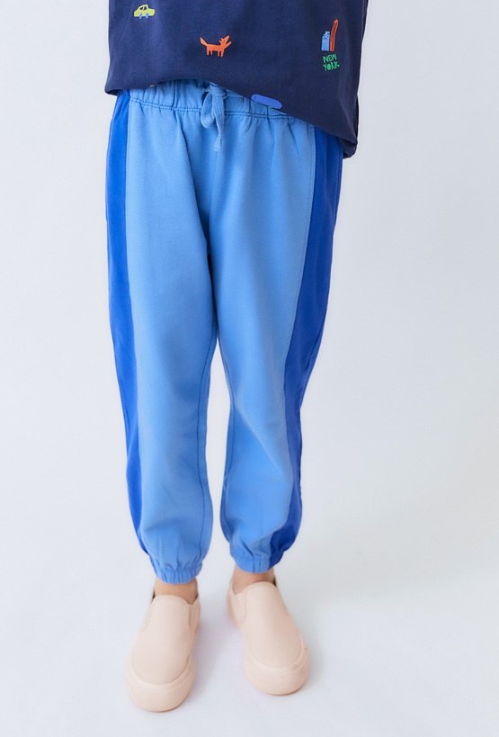 Niebieskie spodnie dresowe dziecięce w dwóch odcieniach.