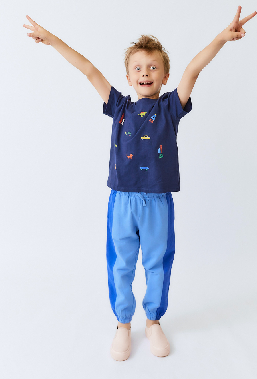 Koszulka chłopięca z nadrukiem miejskim.