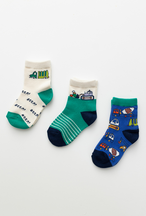Skarpety chłopięce 3-pak – motyw pojazdów budowlanych.