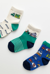 Zestaw 3 par skarpet chłopięcych z atrakcyjnym motywem pojazdów budowlanych. Wykonane z wysokiej jakości bawełny (80%) z dodatkiem poliamidu i elastanu, zapewniają wygodę, trwałość i odpowiednią elastyczność. Kolorowe wzory w odcieniach zieleni, bieli i granatu dodają energii codziennym stylizacjom. Idealne na spacer, do przedszkola czy zabawy w domu.