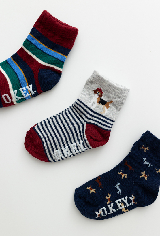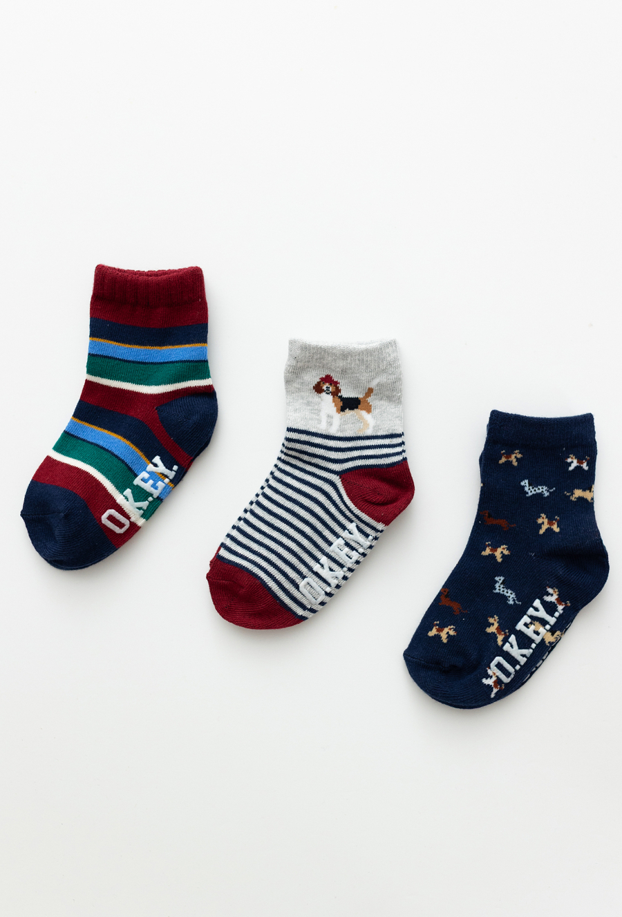 Skarpety chłopięce 3-pak z ABS – motyw piesków.