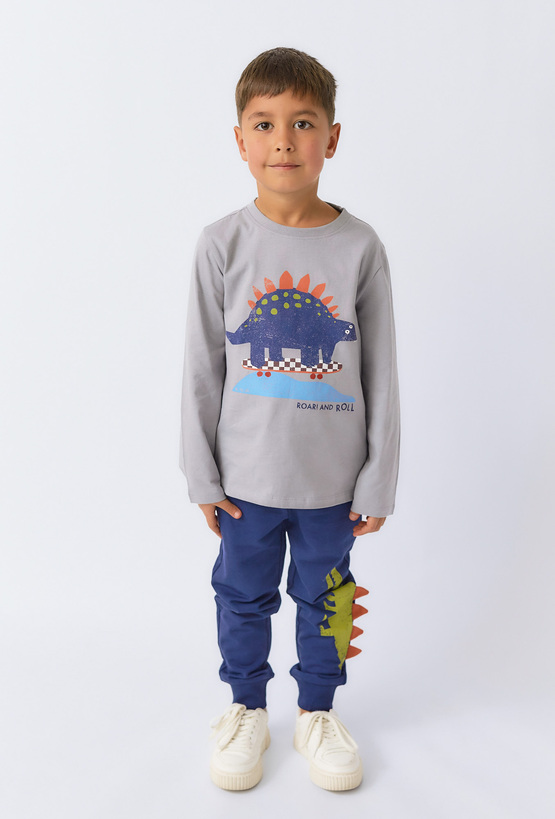 Bluzka chłopięca z długim rękawem i nadrukiem dinozaura