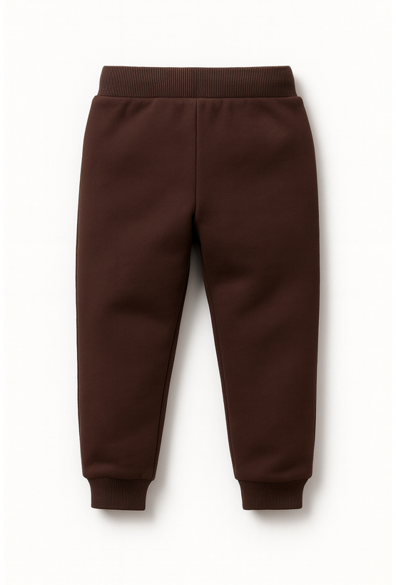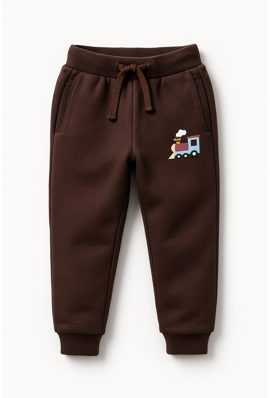 Miękkie i wygodne spodnie dresowe chłopięce w kolorze głębokiego brązu. Wykonane w 100% z wysokogatunkowej bawełny, gwarantują komfort i swobodę ruchów przez cały dzień. Model posiada elastyczny pas ze sznurkiem do regulacji, kieszenie po bokach oraz ściągacze przy nogawkach. Uroczy nadruk lokomotywy dodaje całości dziecięcego uroku.