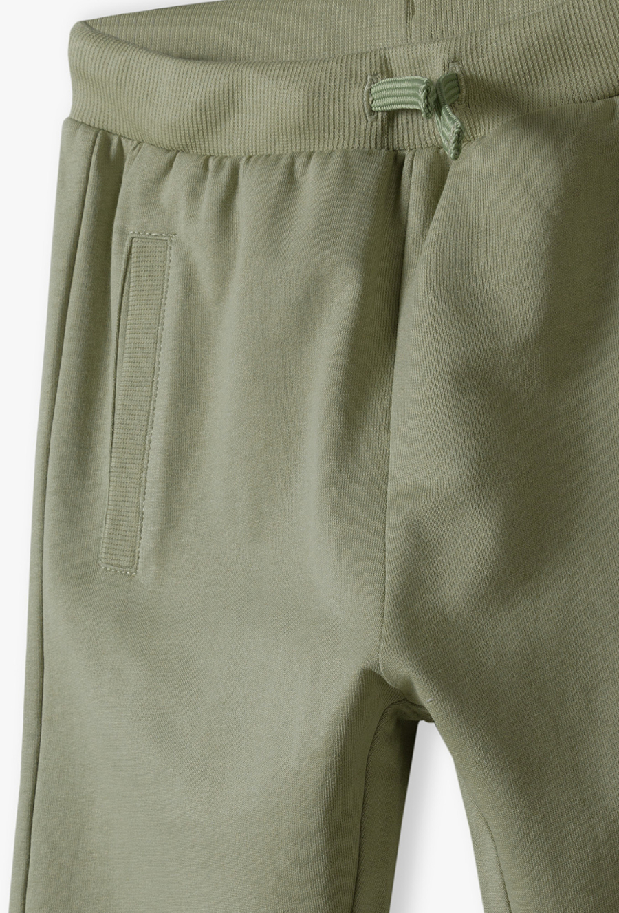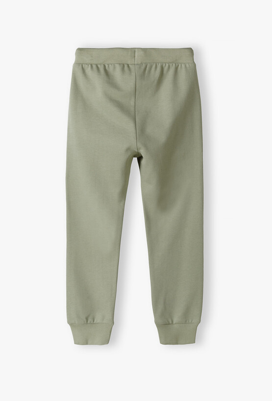 Zapewnij swojemu dziecku wygodę, na jaką zasługuje podczas codziennych wyzwań! Te spodnie dresowe w modnym, przygaszonym odcieniu zieleni to idealny wybór do przedszkola, na plac zabaw czy domowy odpoczynek. Łączą w sobie sportową funkcjonalność z najpopularniejszymi kolorami sezonu. Szeroki, elastyczny pas ze ściągacza nie uciska brzuszka, a dodatkowy zielony sznurek pozwala na precyzyjną regulację obwodu, dzięki czemu spodnie zawsze zostają na swoim miejscu. Szałwiowa zieleń to niezwykle wdzięczny odcień, który świetnie komponuje się z białymi T-shirtami, granatowymi bluzami czy beżowymi swetrami.