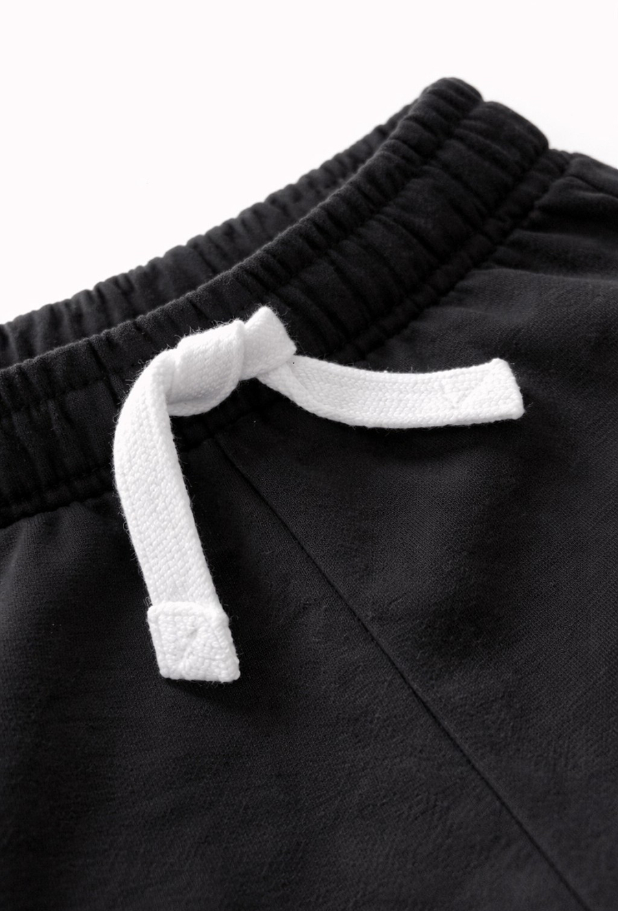 Zapewnij swojemu dziecku komfort na najwyższym poziomie dzięki tym klasycznym, czarnym dresom. Wykonane z miękkiej, oddychającej dzianiny z przewagą bawełny, są idealnym wyborem do żłobka, przedszkola oraz na codzienne zabawy na świeżym powietrzu. Nogawki zakończone miękkimi ściągaczami zapobiegają podwijaniu się materiału i dbają o to, by zimne powietrze nie dostawało się pod ubranie. Czarny kolor to najbardziej praktyczny wybór – świetnie maskuje drobne zabrudzenia i pasuje do każdej góry, od kolorowych T-shirtów po sportowe bezrękawniki.