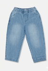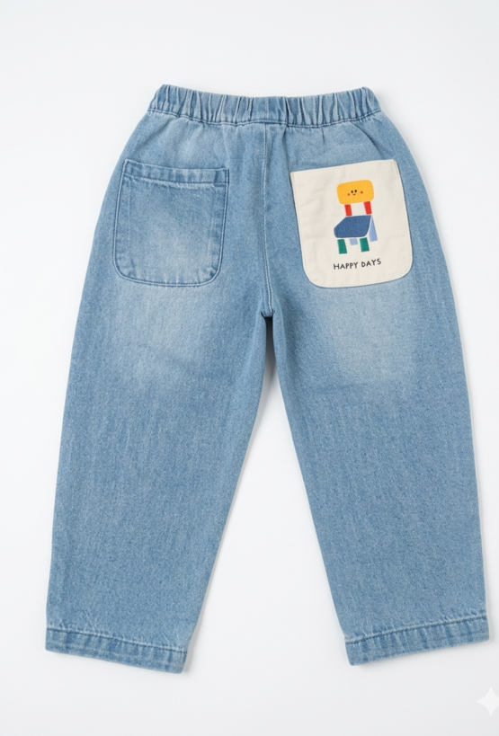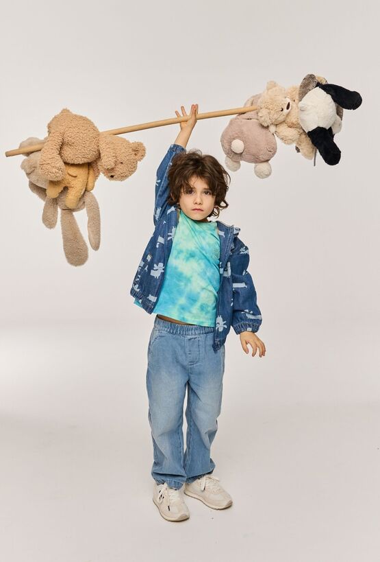 Spodnie jeansowe typu barrel to połączenie modnego kroju i codziennej wygody. Wykonane z denimu 100% bawełna, są trwałe i przyjemne w noszeniu, a jednocześnie dobrze sprawdzają się w ruchu. Charakterystyczny, lekko zaokrąglony fason barrel daje swobodę w biodrach i udach, dzięki czemu spodnie świetnie pasują do dziecięcych aktywności. Guma w pasie ułatwia szybkie zakładanie i nie uciska, a tylna kieszeń z nadrukiem dodaje całości fajnego, dziecięcego akcentu.