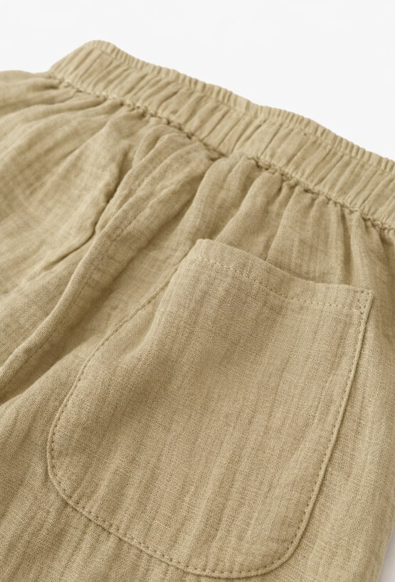 Wygoda i styl w lekkim, naturalnym wydaniu. Zielone joggery barrel 51015 uszyte z muślinu (100% bawełna) są przewiewne i przyjemne dla skóry – idealne na cieplejsze dni. Luźniejszy krój barrel zapewnia swobodę ruchów, a elastyczna gumka w pasie ułatwia zakładanie i komfortowe dopasowanie. Spodnie mają praktyczne kieszenie (w tym kieszonkę z tyłu), dzięki czemu świetnie sprawdzą się na co dzień: do przedszkola, na spacer czy wakacyjne wyjazdy.