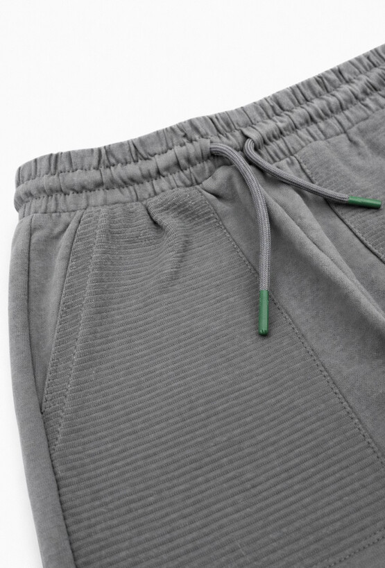 Szare spodnie dresowe w fasonie comfort to wygodna baza na co dzień – do szkoły, przedszkola i na plac zabaw. Uszyte w 100% z bawełny. Praktyczne kieszenie ze strukturalnej tkaniny dodają charakteru i podkreślają sportowy styl, a regulacja w pasie sznurkiem ułatwia dopasowanie do sylwetki dziecka.