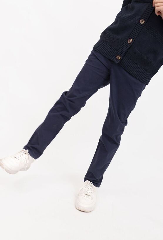 Klasyka w dzieci臋cym wydaniu! Granatowe spodnie klasyczne 51015 w kroju slim to idealny wyb贸r na rodzinne uroczysto艣ci, szkolne akademie i wsz臋dzie tam, gdzie liczy si臋 schludny, elegancki wygl膮d. Uszyte z tkaniny twillowej (98% bawe艂na, 2% elastan) s膮 przyjemne w noszeniu, a lekka elastyczno艣膰 zapewnia swobod臋 ruchu przez ca艂y dzie艅. Dodatkowym atutem jest regulacja w pasie, dzi臋ki kt贸rej spodnie 艂atwo dopasowa膰 do sylwetki.