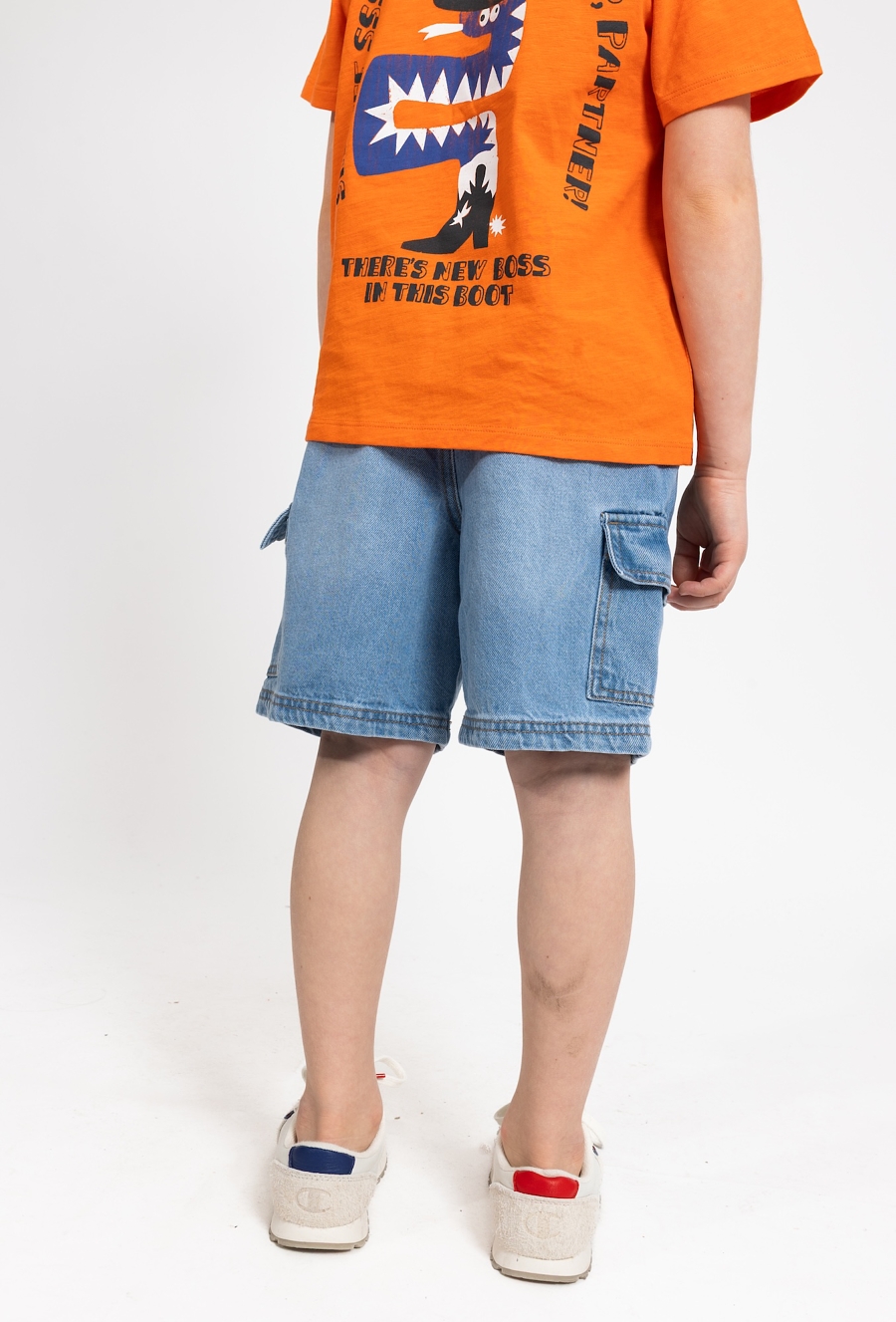 Funkcjonalność i swoboda w chłopięcym stylu. Te granatowe szorty jeansowe typu cargo zostały wykonane w 100% z bawełny, co zapewnia komfort podczas każdej aktywności. Praktyczny krój cargo z dodatkowymi kieszeniami na nogawkach dodaje im sportowego charakteru, a elastyczny pas z regulacją za pomocą sznurka pozwala na łatwe dopasowanie do sylwetki dziecka. To świetna baza do wielu zestawów, która sprawdzi się podczas zabawy i codziennych przygód.