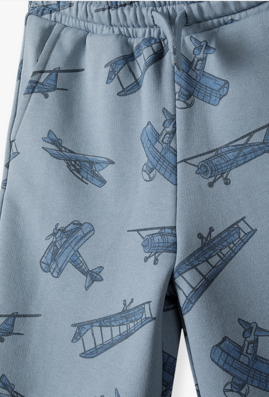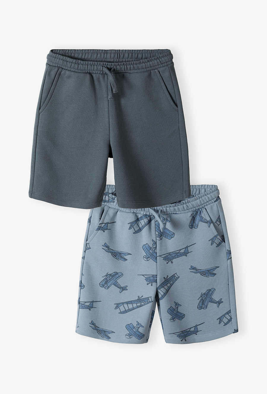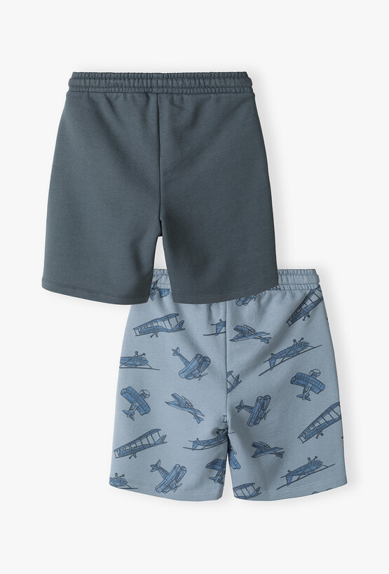 Przygotuj swojego synka na letnie przygody z zestawem, który łączy funkcjonalność z pasją do odkrywania! Ten 2-pak szortów dresowych to idealne rozwiązanie dla rodziców ceniących praktyczne zestawy – otrzymujesz dwie pary stylowych spodenek, które zapewnią dziecku pełną swobodę ruchów przez całe wakacje. Błękitne spodenki pokryte nadrukiem stylowych dwupłatowców. To wzór, który zachwyci każdego małego fana lotnictwa. Para w głębokim, stalowym odcieniu niebieskiego, która stanowi doskonałą bazę do bardziej kolorowych T-shirtów. Długość do połowy uda oraz swobodny krój nogawek gwarantują komfort termiczny i swobodę podczas biegania, skakania czy jazdy na rowerku.