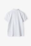 Postaw na ponadczasowy styl, który nigdy nie wychodzi z mody! Ta biała koszulka polo to idealne rozwiązanie dla rodziców szukających balansu między elegancją a codzienną wygodą. To ubranie, które sprawi, że Twój syn będzie wyglądał schludnie podczas rodzinnych obiadów, przedszkolnych uroczystości, a jednocześnie zachowa pełną swobodę ruchów podczas zabawy. Listwa z trzema pasującymi kolorystycznie guzikami pozwala na łatwe zakładanie koszulki i regulację głębokości dekoltu. Prosty fason z krótkim rękawem oraz gładki tył zapewniają nienaganny wygląd i komfort noszenia w każdej sytuacji.
