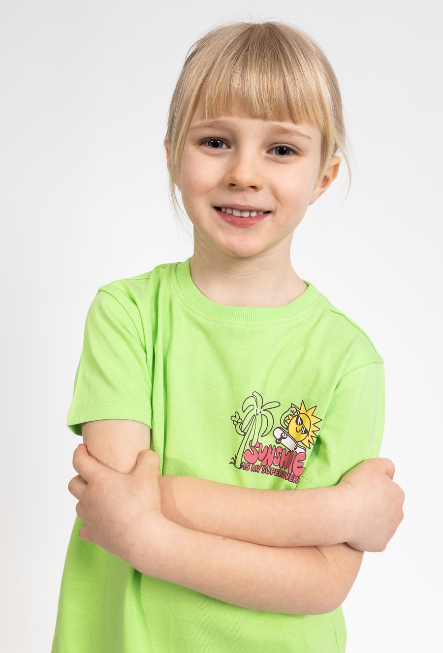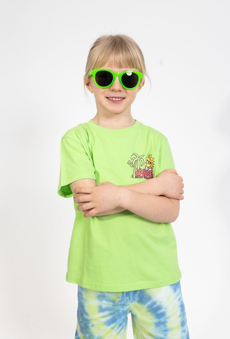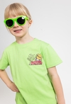 Radosny akcent w letniej garderobie. Ta zielona koszulka chłopięca została wykonana w 100% z bawełny, zapewniając pełen komfort podczas każdej wakacyjnej przygody. Z przodu znajduje się kolorowy i zabawny nadruk przedstawiający słońce na deskorolce z napisem „Sunshine is my superpower!”, co dodaje całości letniej energii. To idealny wybór na ciepłe dni, który świetnie pasuje do szortów czy jeansów, tworząc luźną i stylową stylizację dla chłopca.